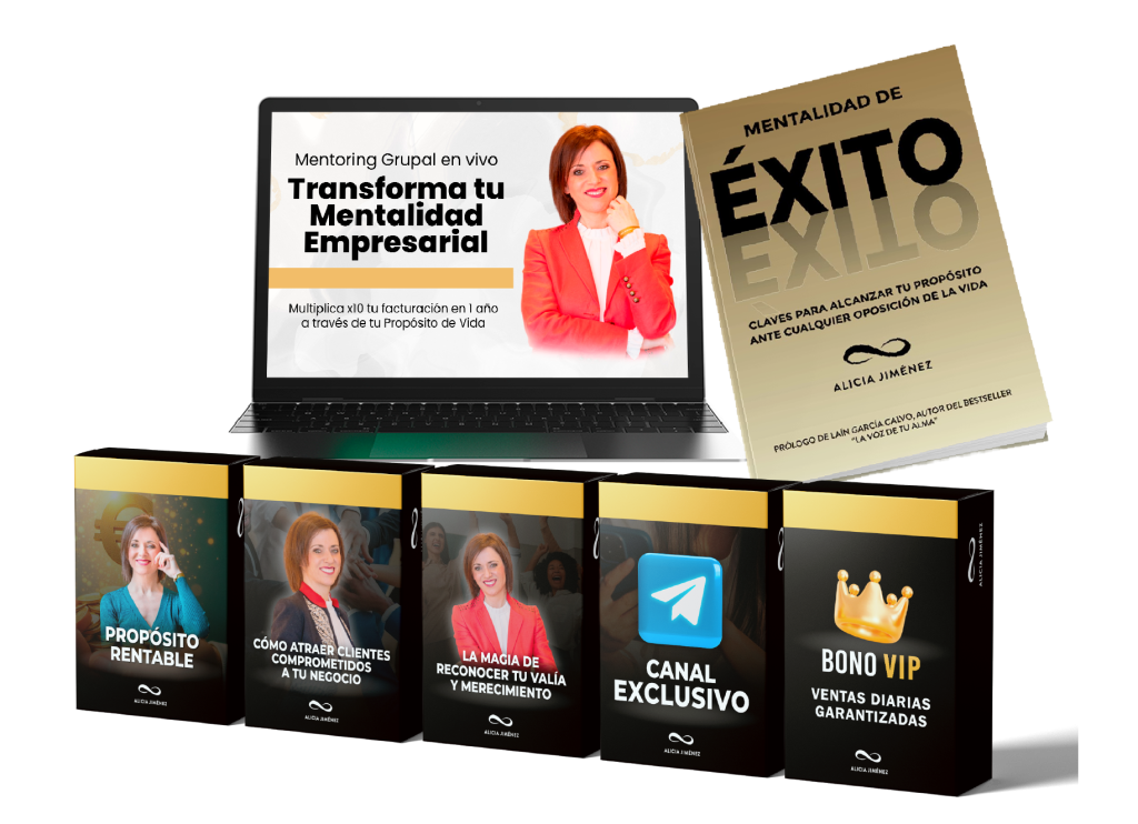 YO SOY ALICIA JIMENEZ te ofrece las herramientas, estrategias y el acompañamiento experto para alcanzar tus objetivos de facturación. Sin embargo, no podemos garantizar resultados económicos específicos o preestablecidos para cada participante, ya que estos dependen directamente de tu implicación, esfuerzo constante y la aplicación efectiva de los conocimientos y métodos que aprenderás. Tu acción y compromiso son esenciales para transformar tu propósito. Es importante que leas muy bien los Términos y Condiciones o las condiciones del Contrato.